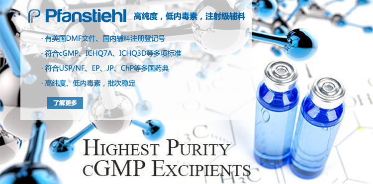 “熱烈祝賀Pfanstiehl的注射級甘氨酸Glycine(G-140)喜獲CDE登記號F20250000403, 這是Pfanstiehl產品獲得的第18個CDE登記號!”甘氨酸在醫藥輔料制劑中應用廣泛,, 可作為緩沖劑,增溶劑,穩定劑等,具有諸多優勢。Pfanstiehl秉承一貫高品質理念,為滿足全球生物制藥行業對于高品質甘氨酸的需求,隆重推出的注射級甘氨酸Glycine (G-140), 具有超高純度,超低內毒素,超低金屬殘留的特點,單獨檢測29種金屬離子,并且新增DNA,RNA,DNA酶,RNA酶和脂肪酶,亞硝酸鹽等多項質量指標的檢測,符合多國藥典規定(USP, EP, BP, JPE, ChP),可用于生物治療性藥物和疫苗的生產。產品信息:· 產品名稱:Glycine, High Purity, Low Endotoxin, Low Metals, USP, EP, BP, JPE, ChP (G-140)· 中文名稱:甘氨酸· 分子式:C2H5NO2· 分子量:75.07 g / mol· CAS號:56-40-6· 產品貨號:G-140產品特點: · 超高純度,超低內毒素,超低微生物含量,超低金屬雜質殘留· 質量指標新增DNA,RNA,DNA酶,RNA酶,脂肪酶和亞硝酸鹽檢測· 符合多國藥典:USP, EP, BP, JPE, ChP· 符合ICH Q3D標準· 符合GMP標準· 已獲DMF和CDE登記號 產品應用:· 緩沖劑· 穩定劑· 增溶劑如果您對Pfanstiehl注射級別Glycine G-140感興趣,歡迎聯系Pfanstiehl 中國區代理商北京西美杰科技有限公司獲得如下詳細的產品概況說明文件和測試樣品。Pfanstiehl Inc.最新產品系列如下,歡迎聯系北京西美杰科技有限公司獲取100g裝免費樣品。北京西美杰科技有限公司為Pfanstiehl中國代理,為客戶提供完善的技術支持與售后服務。歡迎撥打西美杰客服電話400-050-4006或者登陸網站www_xmjsci_com.ozcatbne.com了解更多信息。 更多>